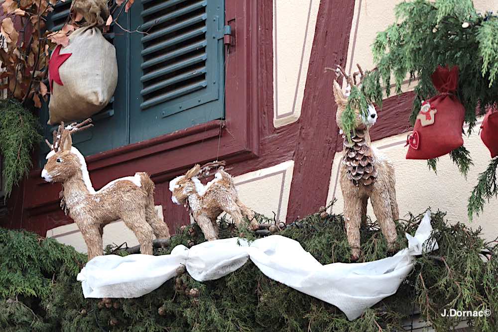 (Décembre 2017) En allant du théâtre municipal vers le centre de Colmar, j’ai croisé pas mal de maisons joliment décorées. N’oublions pas que Noël était proche…
