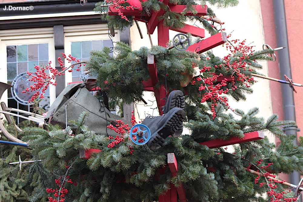 Voilà un sapin bien garni même si la garniture décorative n’est pas des plus classiques…