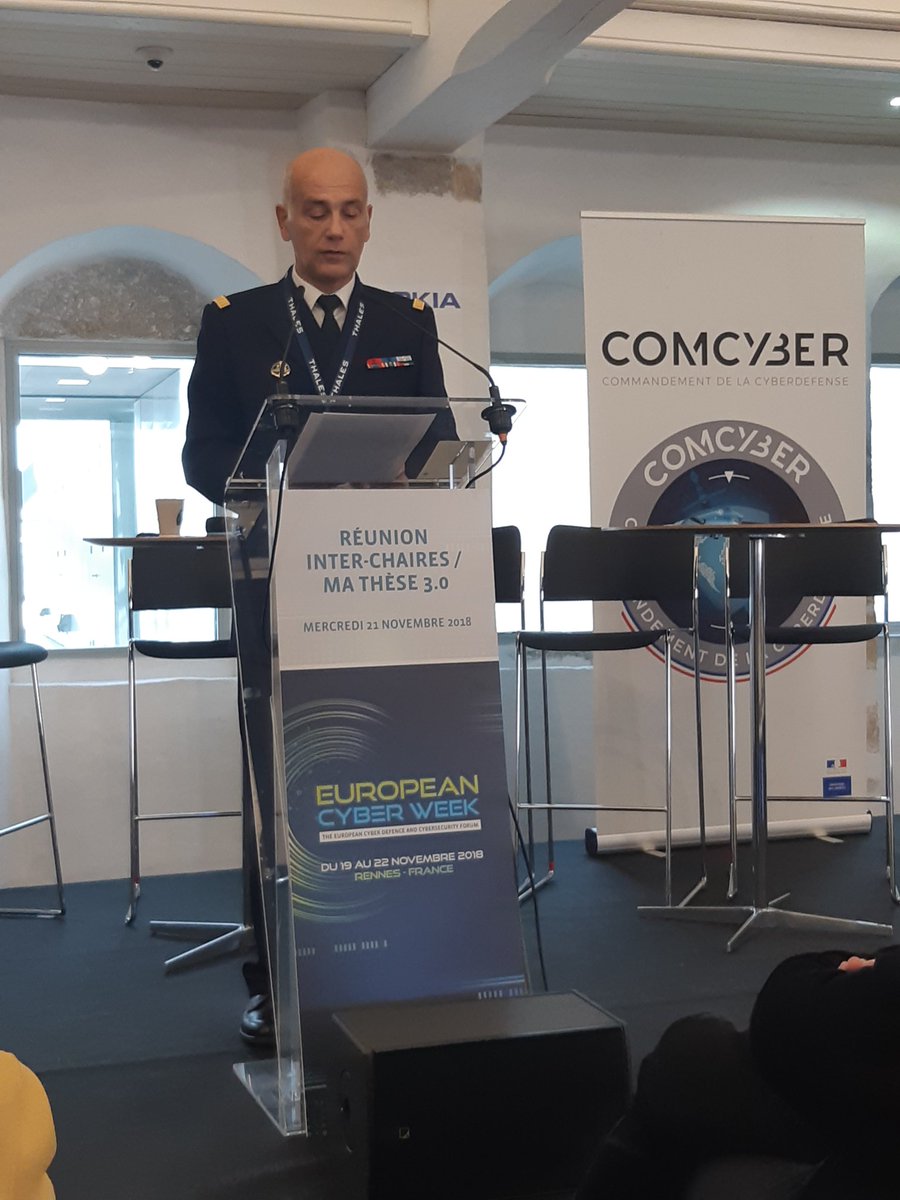 Place à la clôture et la remise des prix par le CA Verel du #Comcyber et@F_BACHELIER, député d'Ille-et-Vilaine#EuroCyberWeek#recherche#thèse#cybersecurite#cyberdéfense pic.twitter.com/Op4Q9hiR4k