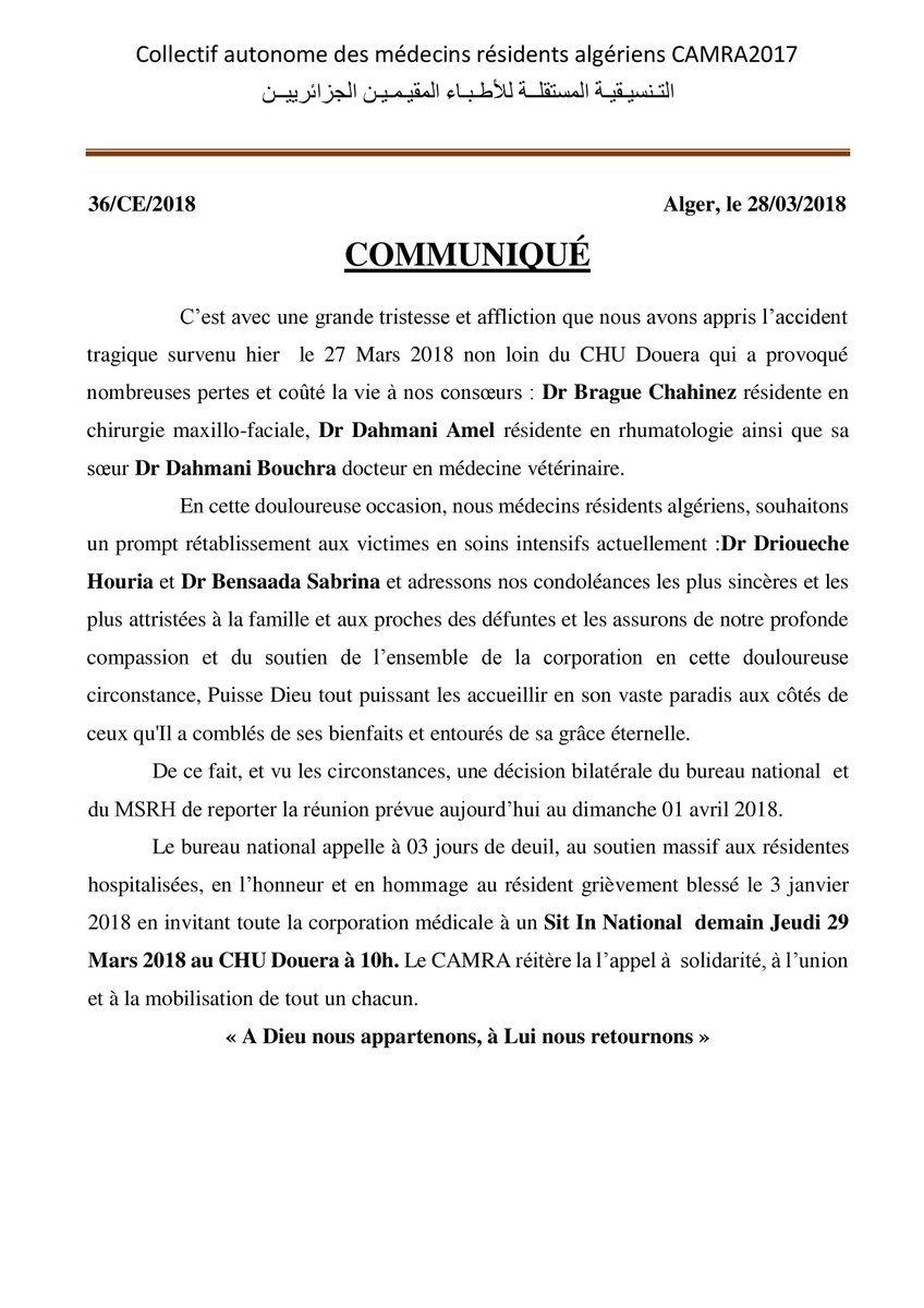 #CAMRA#CAMRADz#Communique pic.twitter.com/tyJYEUgQKD