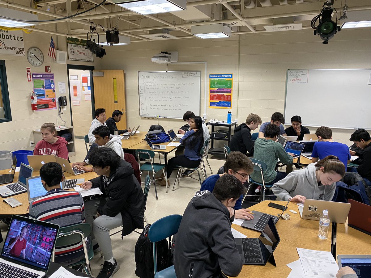 #CompSci classes. AP CSP students code reviewing their individual programming approaches to the popular FizzBuzz problem, while learning about software design pic.twitter.com/4s6GgI4J23