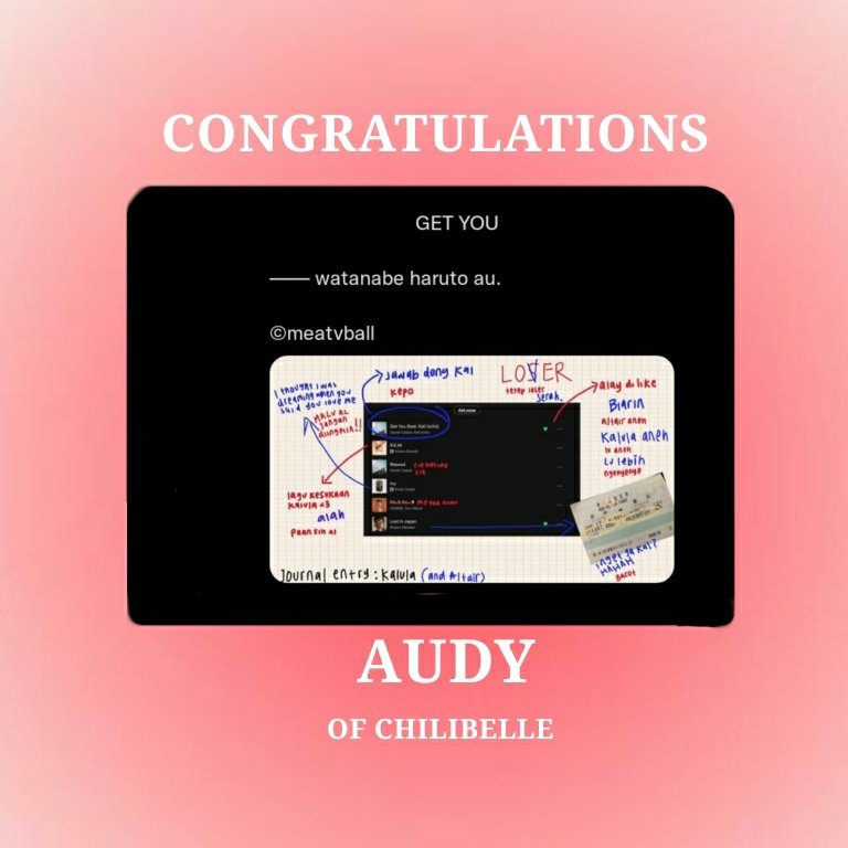 #CHILIBELLE#AUDY#ALTAIREND#CONGRATULATION#GETYOU@meatvballpic.twitter.com/lArGdFQ31e