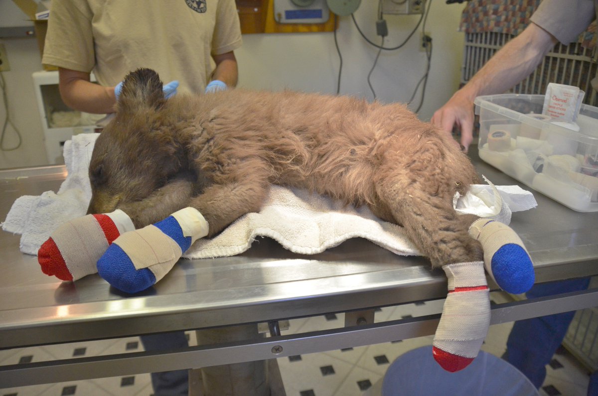 #wildlife news from the#416Fire near Durango.@CPW_SW officers rescued a bear cub with burned feet. We're now treating it at our Frisco Creek facility and it will go back to the wild next winter.#Conservation pic.twitter.com/kt2H3qZr9V