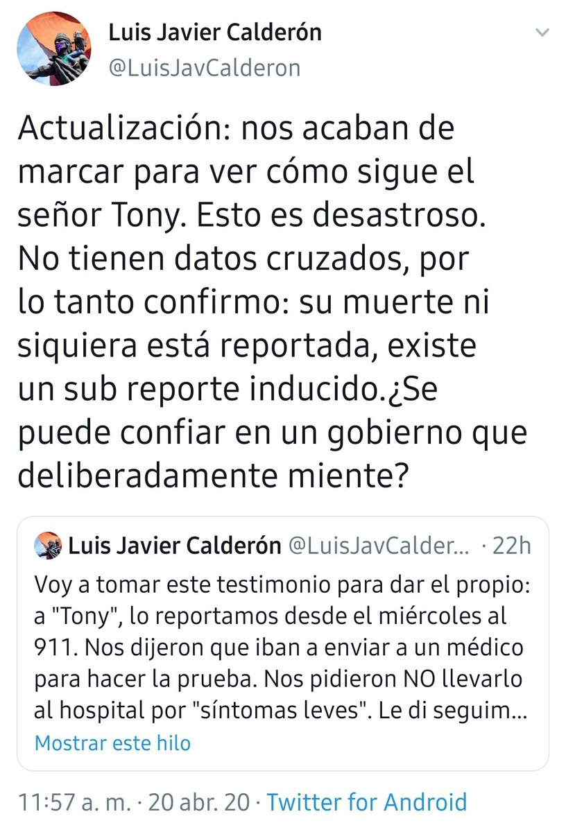 Comparto HILO de mi primo para hacer evidente dos cosas:1)La importancia de quedarte en tu casa,cuídate y cuida a los más vulnerables. 2)La pandemia rebasa por mucho a este gobierno. La ineptitud,improvisación,el descaro y la mentira son sus ejes