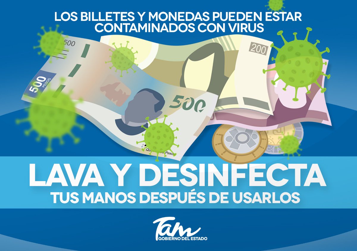 #PorTuSaludViveMás Cuida tu salud del#CoronavirusMx Cuando manipules efectivo.