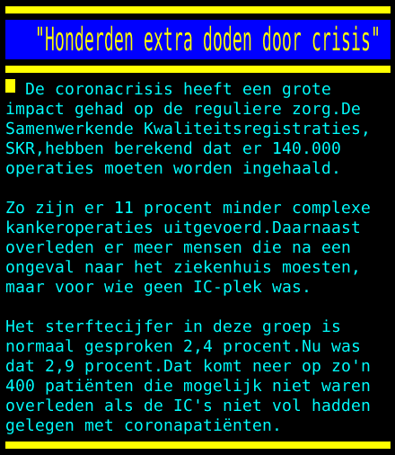 Niemand stierf het afgelopen jaar die niet al ten dode opgeschreven was. Maar door de domme regeltjes, gaat dat nu veranderen. Met dank aan het dociele vee. Hopelijk dat het vaccin ons verlost daarvan..