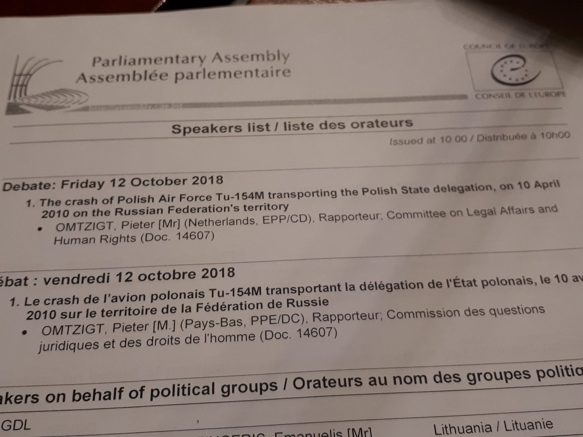 @PACE_News in Strasbourg on the report of@PieterOmtzigt about crash of Polish Air Force transporting Polish State delegation in 2010#CouncilofEurope#PACEpic.twitter.com/x3UTPZJ6jW