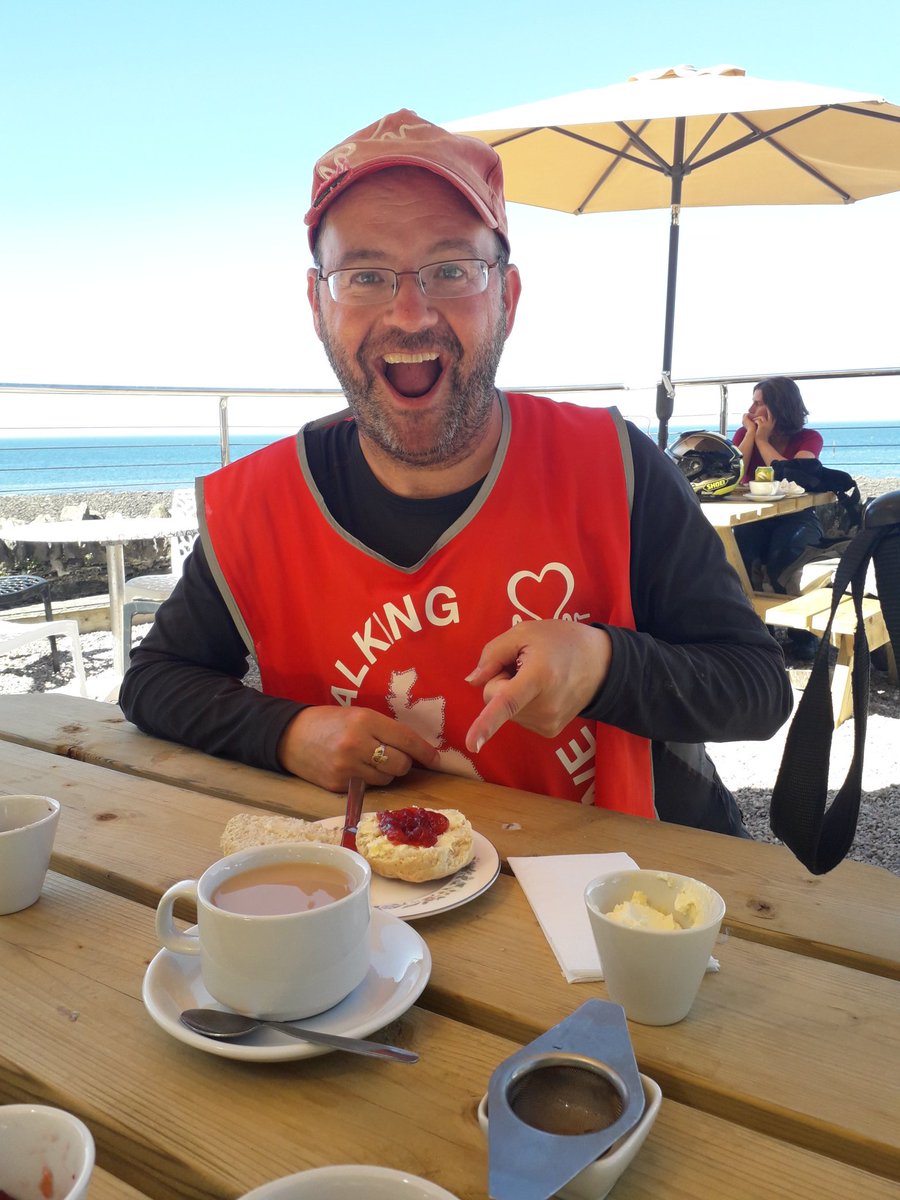 #NationalCreamTeaday Walking around the coast of Britain for@TheBHF 3900 miles walked. Now in#Devon#walking@swcoastpath.#creamtea at#Lynmouth. Visit http://atrailoftwohearts.com pic.twitter.com/zqx3tYSffq