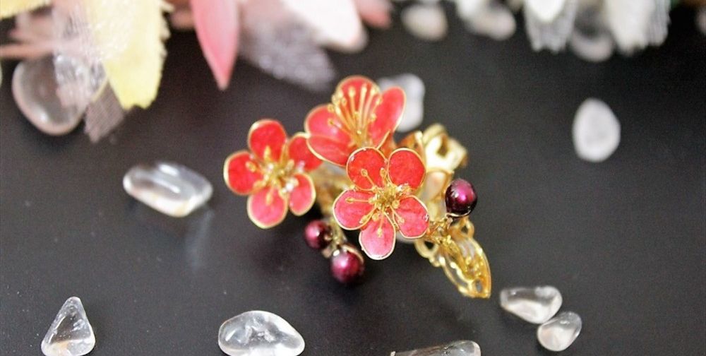 まぁるいフォルムと香りが愛らしい梅の花。 その可愛らしい梅の花が、華やかなイヤーカフになりました。
