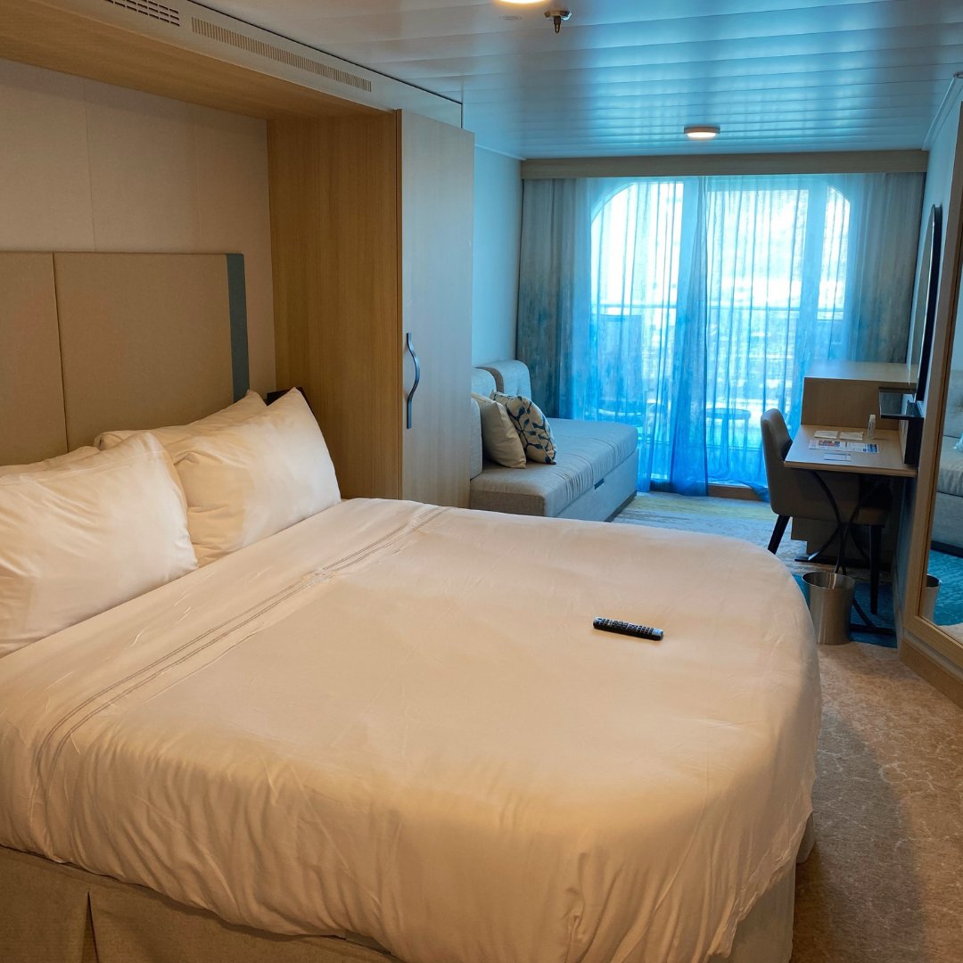 Wonder of the Seas Balcony Cabin The cabins are light and spacious, with neutral decor throughout! Much of the ship is an array of bright colours, yet the cabins have a calmness to their design!