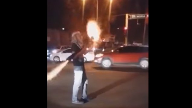 #Culiacán,#Sinaloa. Con un artefacto parecido a una bazuca y un arma corta, dispara balas y fuegos artificialespic.twitter.com/UWTMjtC8jf -
