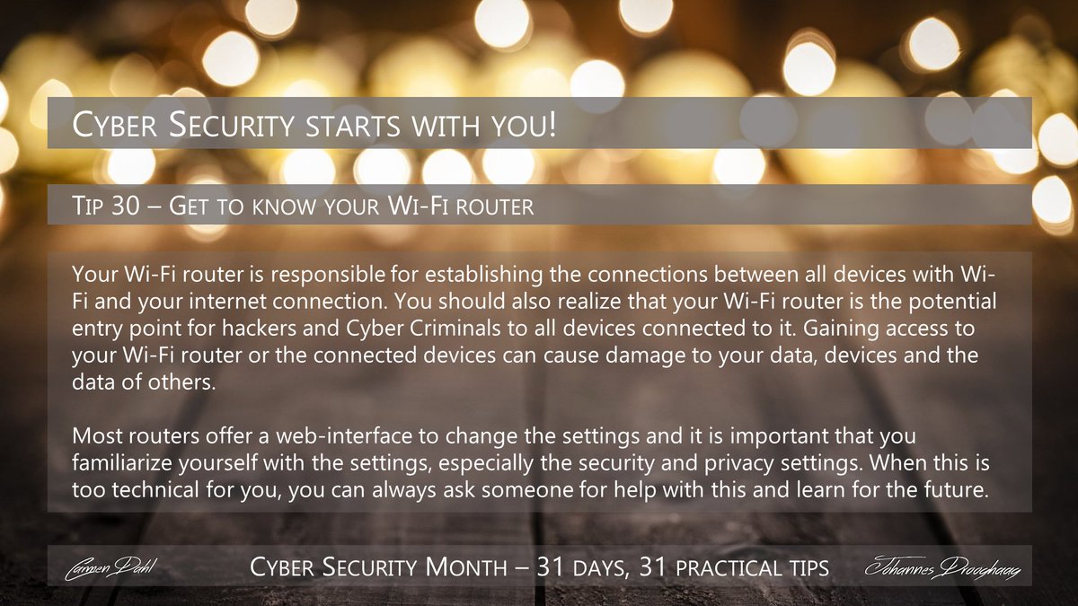 October is #CyberSecurityMonth and we celebrate these 31 days with 31 practical tips to help you build#CyberResilience, by@Dahl_Consult and@DrJDrooghaag#CyberSecurity@NevilleGaunt@archonsec@avrohomg@alcgroup@fogle_shane@domhalpspic.twitter.com/9MZn2um32d