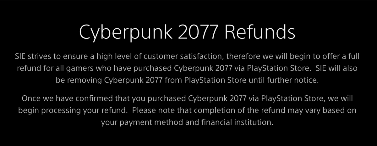refunds but have REMOVED it from the PlayStation Store.