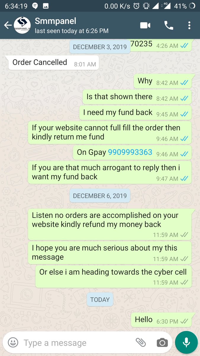 Be Alert ! Website http://www.smmpanel.in is scamming people by providing fake services & duping the money. Ph No : 9814969005 Email : smmpanel.in@gmail.com