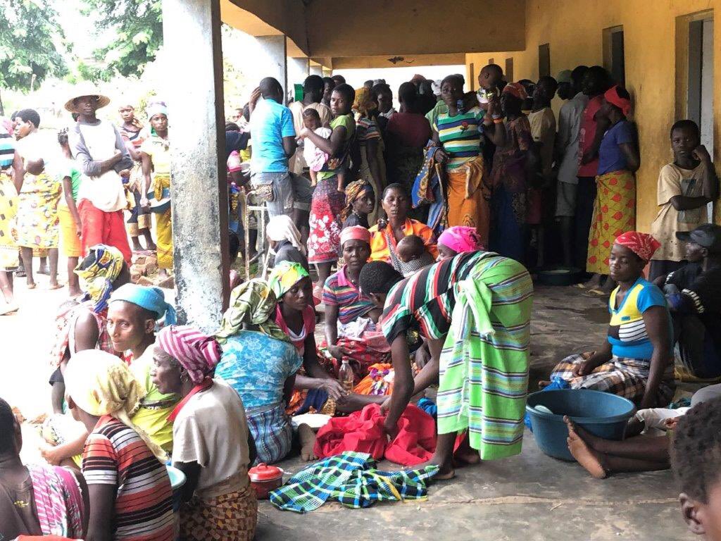 Families are receiveing primary health and nutrition care in the shelter of Cafumpe in the distrcit of Gondola.