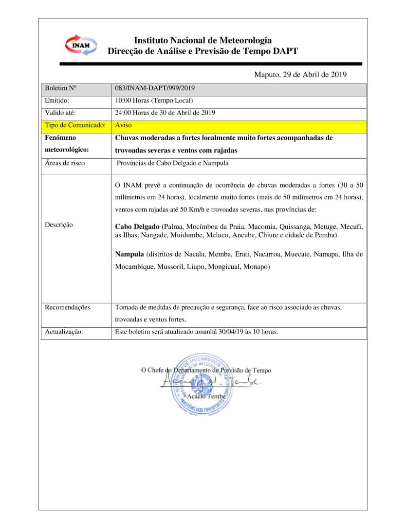 #CaboDelgado has ever been hit by a cyclone and this is a very strong one. This is also the first time#Mozambique has been hit by two strong cyclones in the same season.#CycloneIdai (15/03) and#CyloneKenneth (25/04) -