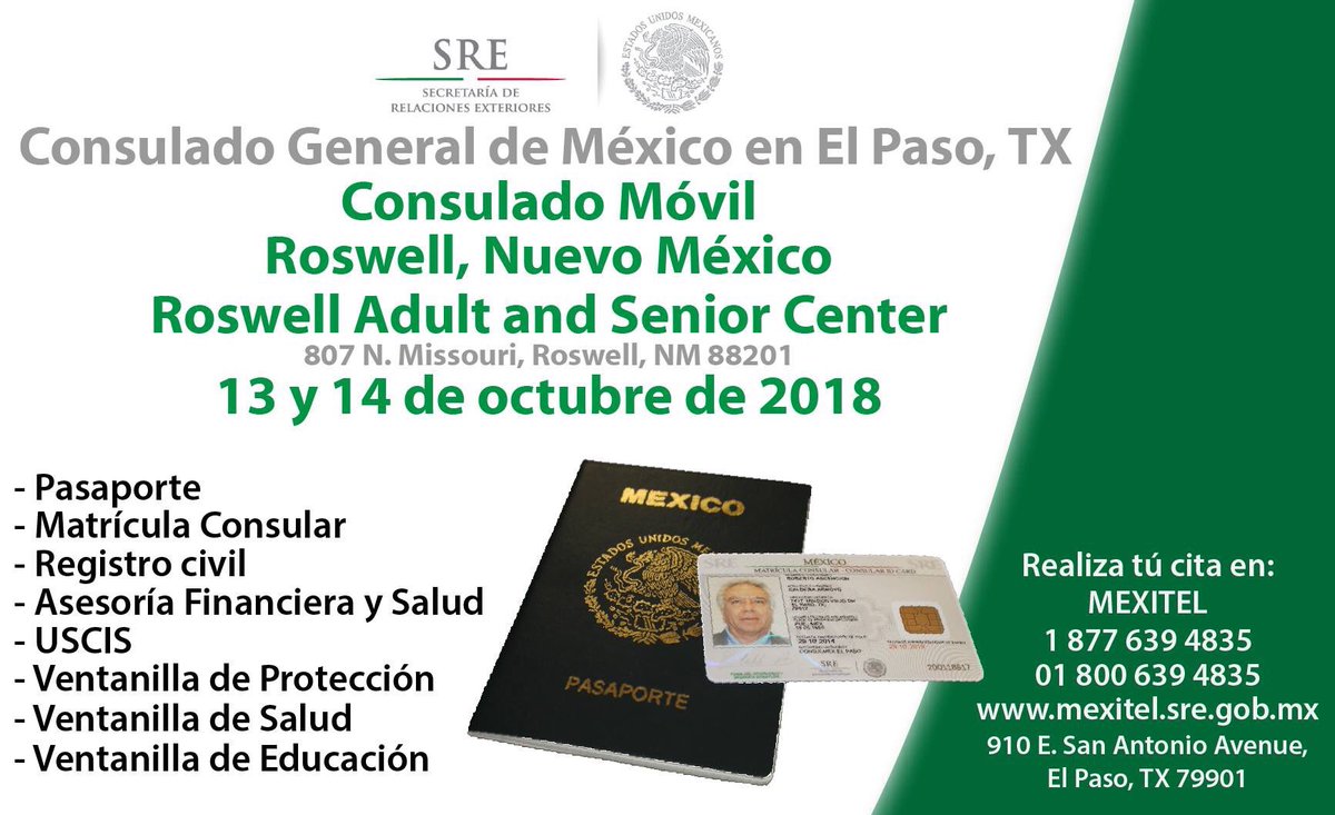 #DACA, aplicación de vacunas contra la influenza,#Asesoríafinanciera, de salud y educación,#orientación en declaración de impuestos. visita el Consulado Móvil en#Roswell, NMpic.twitter.com/p2cw7kKha0 – en Roswell Adult Center