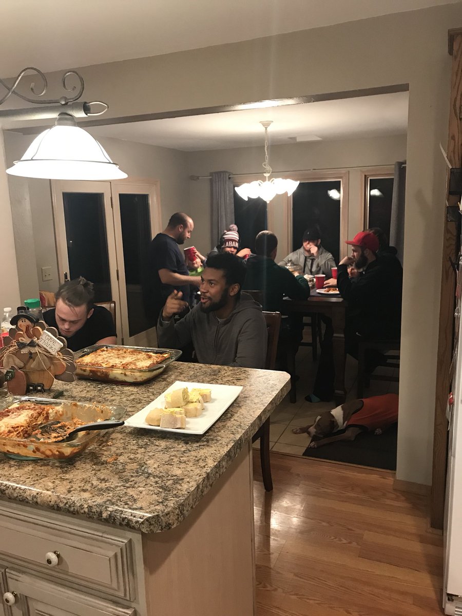 Great having the Boys over for DB dinner!!! EK loves making them tea! Blessed to have a great position group!!