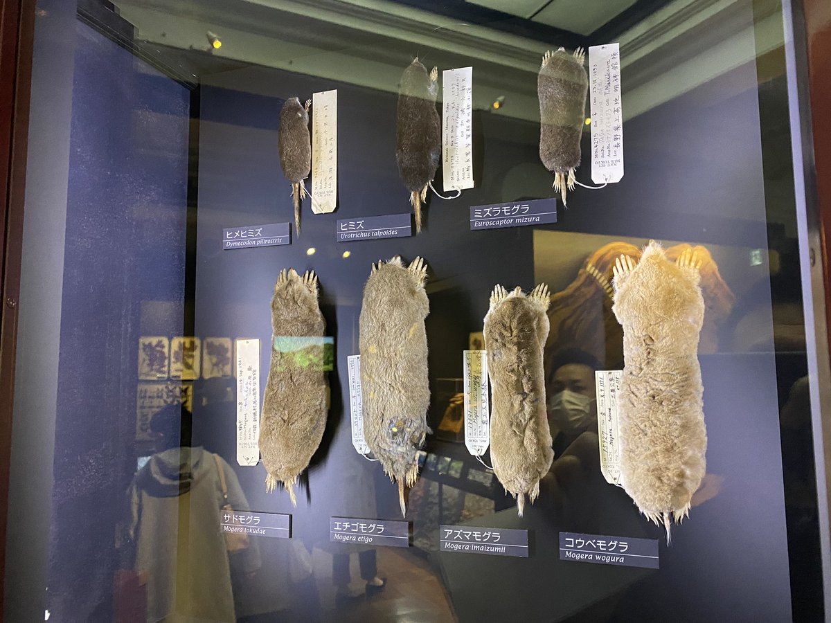 国立科学博物館でイノとモグラの剥製を見比べ。イノはツキノワグマサイズ、モグはネズミサイズ…いかに平子さんの合気でもこの圧縮率は…