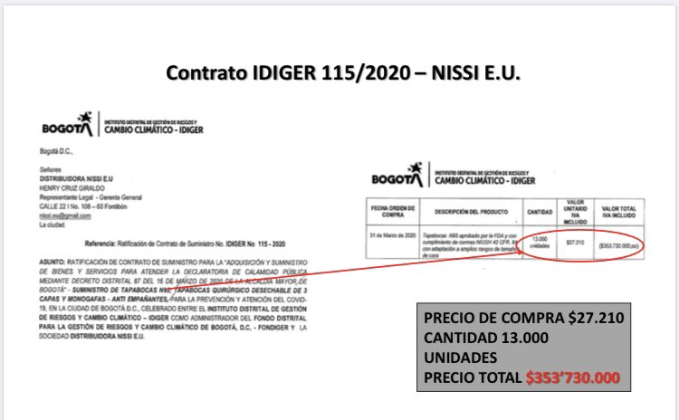 #Denuncio que en el IDIGER-, para la adquisición del(Tapabocas N95) existen cotizaciones por $6.000 pesos en el estudio de mercado previo, pero terminaron comprando a $22.000 más de 30.000 tapabocas de estos. Precio total de la compra $353.730.000. ¿Transparencia@ClaudiaLopez ?pic.twitter.com/apy4eR141l