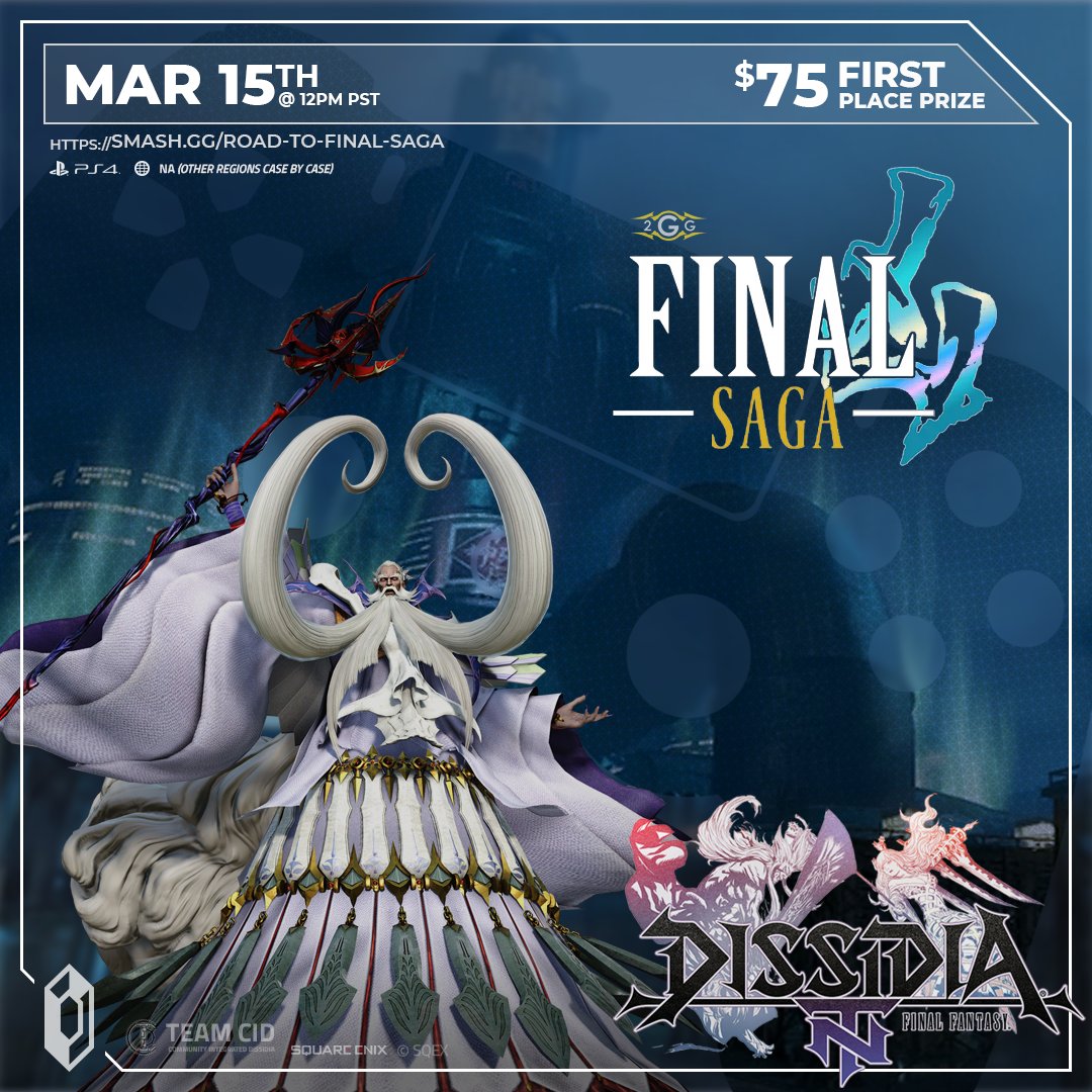 #Dissidia NT Road to Final Saga are live! Another $75 cash prize up for grabs to the first place team. This is the last "Road to..." online tourney leading up to Final Saga in California at the end of this month!#DFF_NT http://bit.ly/marchsaga pic.twitter.com/yjbBIFfsiT