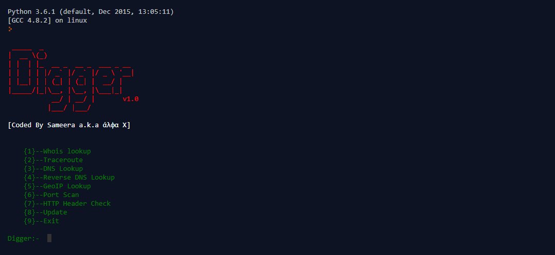 Digger - Tool Which Can Do A Lot Of Basic Tasks Related To Information Gathering http://j.mp/2AQdg2B