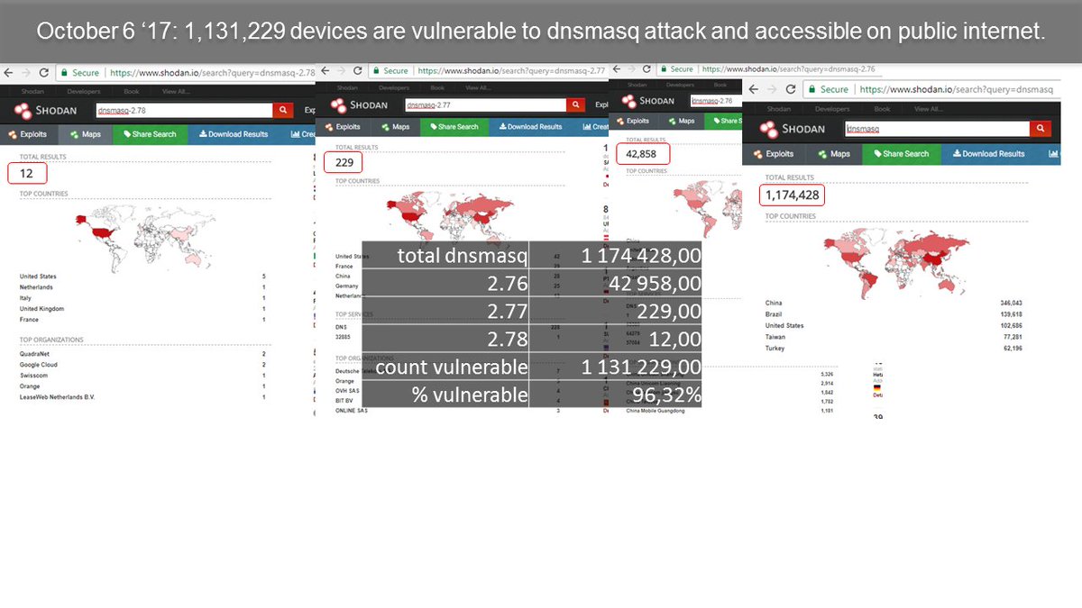 #exploit to#dnsmasq 1,131K devices available on public internet.#patch and#detect today#CyberAware#CyberSecuritypic.twitter.com/KgQN5gJynL