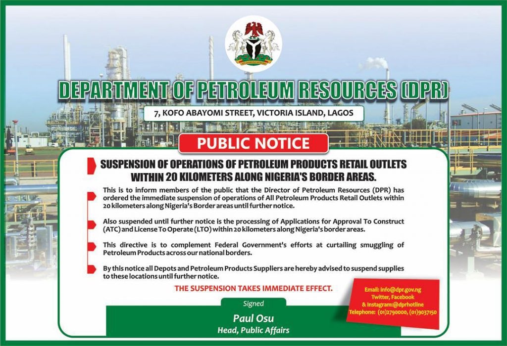 PUBLIC NOTICE: The Department of Petroleum Resources (DPR), has made the following announcements which are to take immediate effect. Check out our blog. Link in bio.
