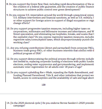 DSA votes DOWN a national political 'litmus test' (below). Debate seemed swayed by a delegate from ATL, who called requirement #1, for candidates to describe themselves as 'democratic socialists,' a 'death sentence' in the South. 'Do not do this to us,' she said.