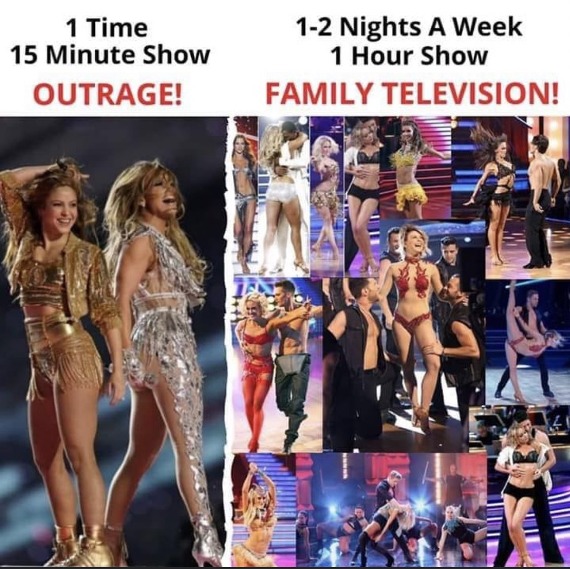#Superbowl halftime show was that it was a whole bunch of Latinx culture on the screen, but to not sound racist, people want to say it's the sexy outfits Shakira and JLo wore. I've seen more risque outfits on#dwts. Y'all just racists. pic.twitter.com/qva9QEsNuG -