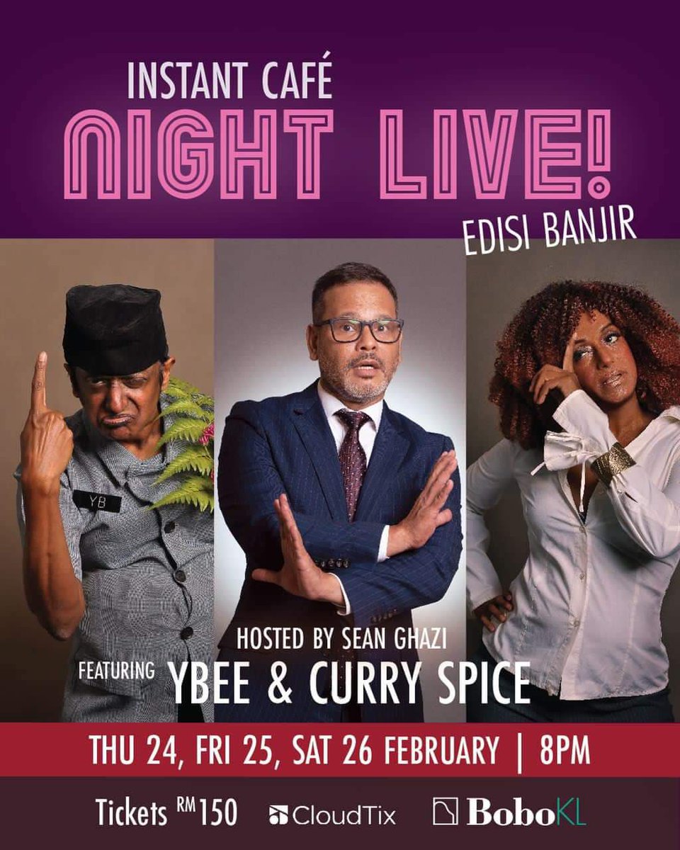 @YBeeee MP of Ulu Katak, Curry Spice of Sentul and@Jo_Kukathas of Instant Cafe Theatre@ICTweeets have in common? Ans: They’ll all be appearing in Instant Cafe Night Live, Edisi Banjir at BoboKL. Just not at the same time. It’s in their contract.#DaruratBanjir pic.twitter.com/Fmw59JN0fg