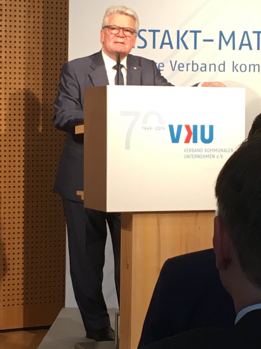 #Daseinsvorsorge stärke die#Zivilgesellschaft und das sei ein Dienst an der#Demokratie, so Altbundespräsident Joachim Gauck beim Festakt 70 Jahre@VKUonline heute in Berlin. Dazu wichtige Sätze zu Kulturunterschiede Ost/West. Die Rede lohnt das Nachlesen!pic.twitter.com/dmH8tx4Cmv