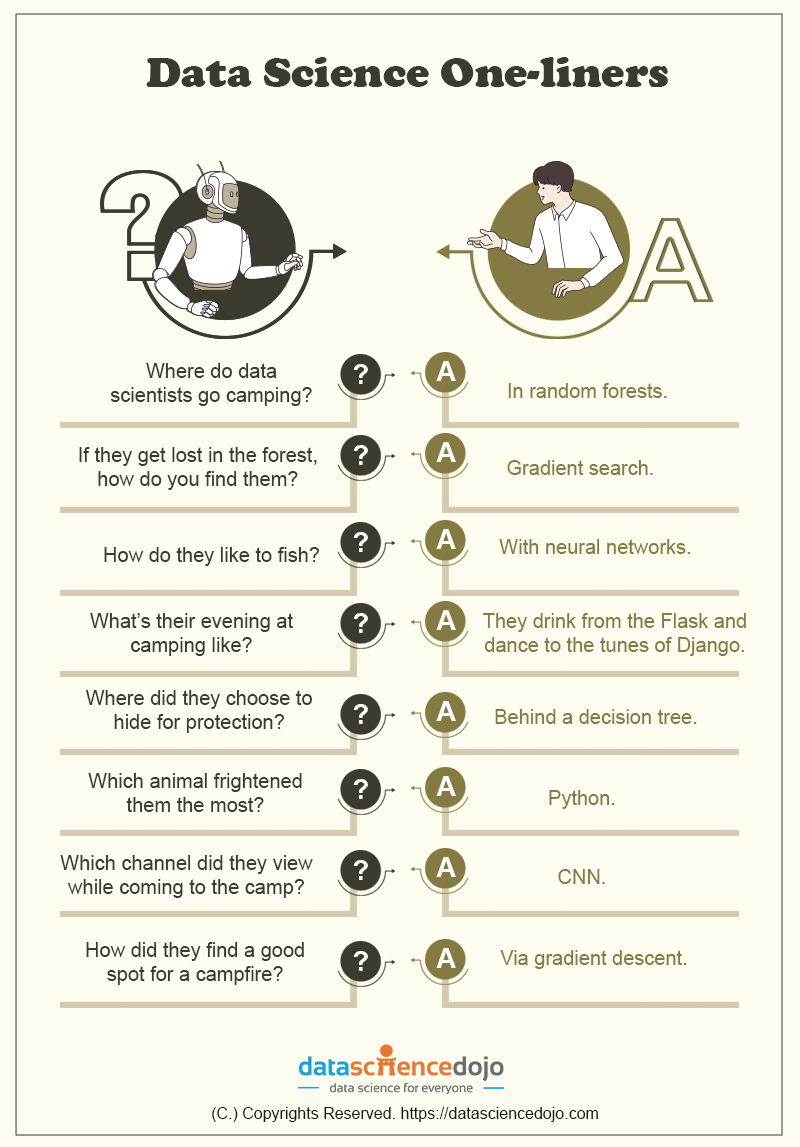Data scientists went camping. A list of data science puns. Can you think of any more puns?