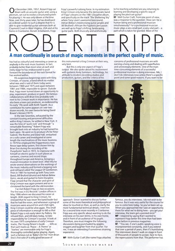Robert Fripp in SOUND ON SOUND March 1988