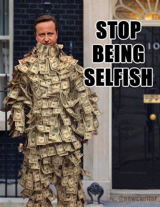 #davidcameron Ending#austerity is selfish?! YOU were selfish for policies which cause fear, hardship, misery, and death!#NotOneDayMore -