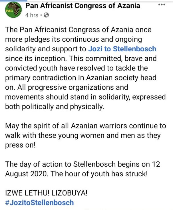 The Pan Africanist Congress of Azania reiterating it’s support and solidarity.
