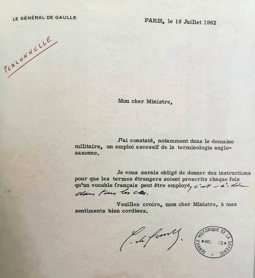 #DeGaulle dans le langage. Arrêtons d’employer des mots anglais pour faire chic. Ce snobisme stupide délite notre langue. pic.twitter.com/CKrugXB2nR