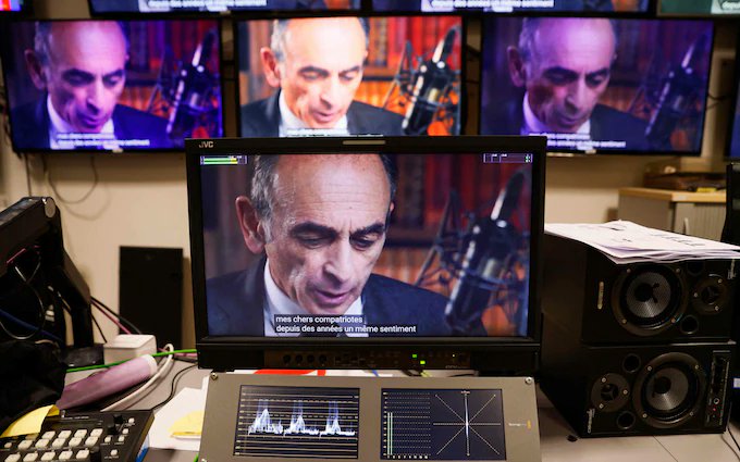 Presidency. W/o obv touching the content, there's a clearly intentional interpretative key to the set-up of Zemmour's speech. Reading behind a microphone, there's a very particular reference to #deGaulle pic.twitter.com/soAaASehy3