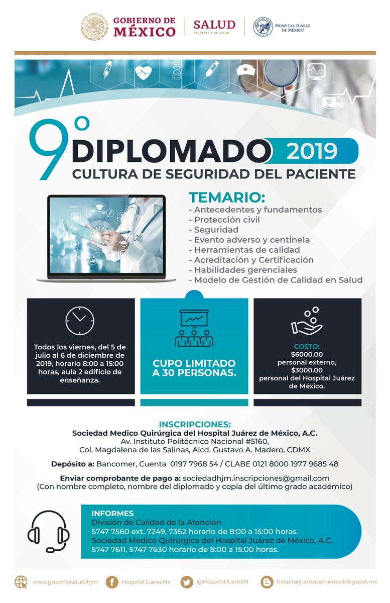 #DeInterés te invitamos al 9°#Diplomado Cultura de Seguridad del Paciente , te compartimos el cartel con la información.pic.twitter.com/2NihwllPdz