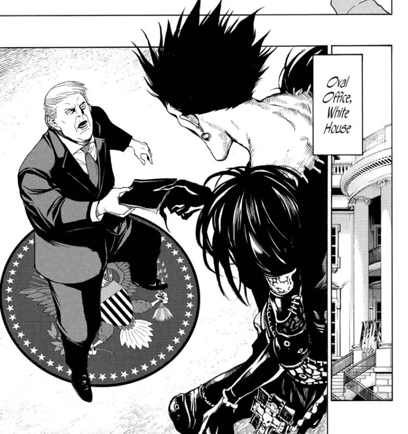 @realDonaldTrump meets with Shinigami Ryuk in the latest chapter one shot sequel manga for#DeathNote pic.twitter.com/NpYJV4AOLX