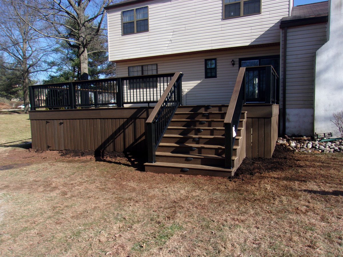 #deck project features Timbertech Mocha decking, black Radiance railing with a Mocha drinkrail, Mocha skirting and Azek step lights#deckbuilder#deckideas#outdoorlivingpic.twitter.com/17mzRUoaM6