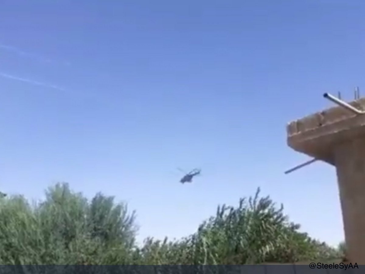Russian helicopter during survey flight over the village of “al Ali” which is located just west of