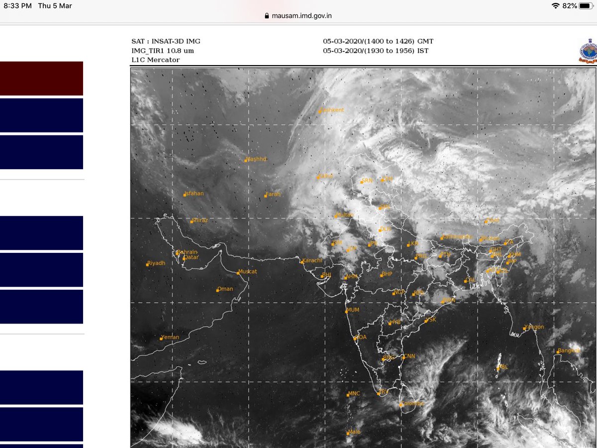 Rain in Delhi as winter refuses to retreat . An ominous looking cloud formation on IMD satellite images.