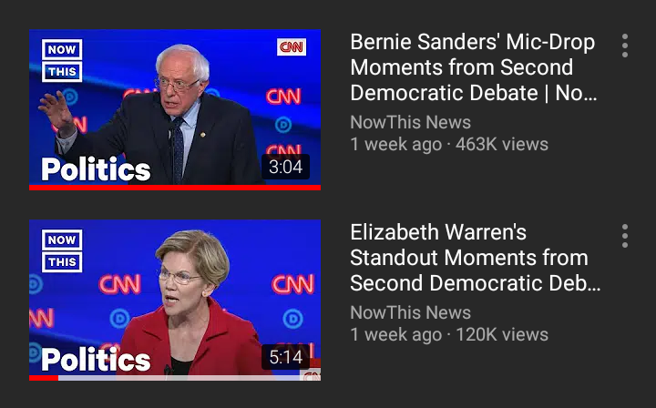 This pattern is reflected in Bernie's subscriber count on YouTube and the number of views he gets. Bernie's the undisputed king of social media. He won major strawpolls for