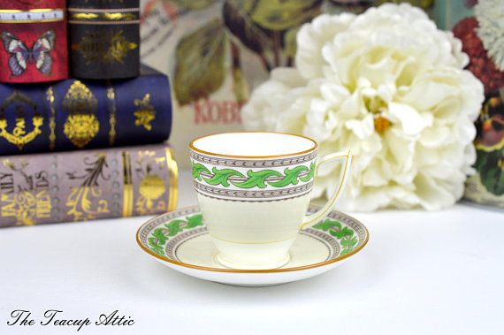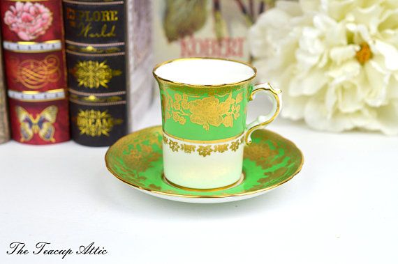 #Hammersley#Green And#White Two Tone#Demitasse and#Saucer With Gold#Roses#English Bone#China ca 1940#vintage#antique https://buff.ly/2rdsN7V pic.twitter.com/5FlmcIhnnT