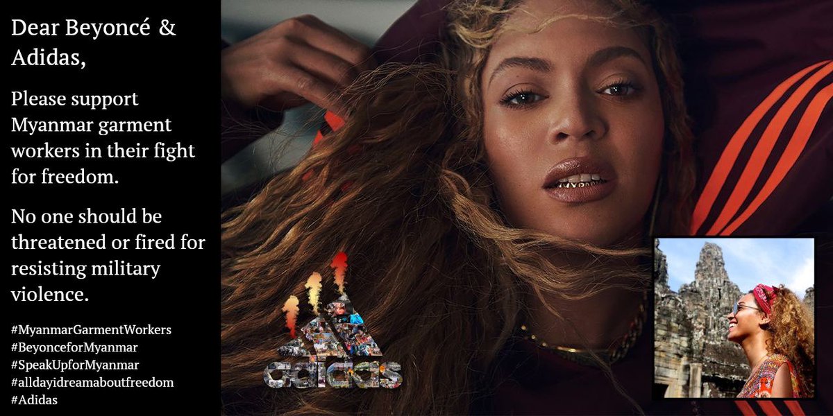 #democracy is safe as long as coups like this are allowed to happen. No#democracy will survive this century if we look at the other side.#adidas is already in the streets of#myanmar, side by side with the young protesters wearing it#beyonceforMyanmar#SaveMyanmarpic.twitter.com/b8Oxl5ou9O