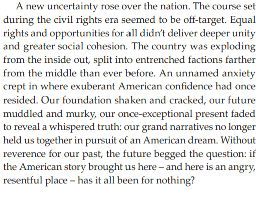 The quote is mine. The link is to a review of Caldwell's new book which cites the Civil Rights Act as the source of a constitutional crisis, and one that I see as leading to the breakdown of our shared reality. Another quote from