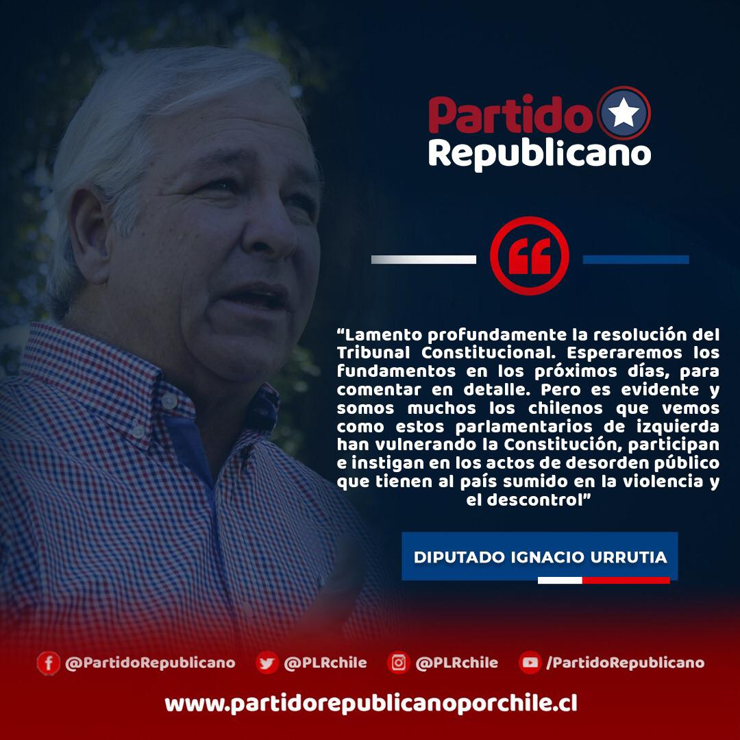 #DestituciónAhora Lamentamos profundamente la resolución del Tribunal Constitucional sobre la destitución de diputados que han incitado a la alteración del orden público. Seguiremos colaborando con todo lo que este a nuestro alcance para recuperar la seguridad#RecuperemosChile