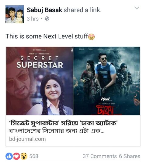 #SecretSuperstar and gave the screen to a Bangladeshi Movie#DhakaAttack pic.twitter.com/8BEVH6zdAV