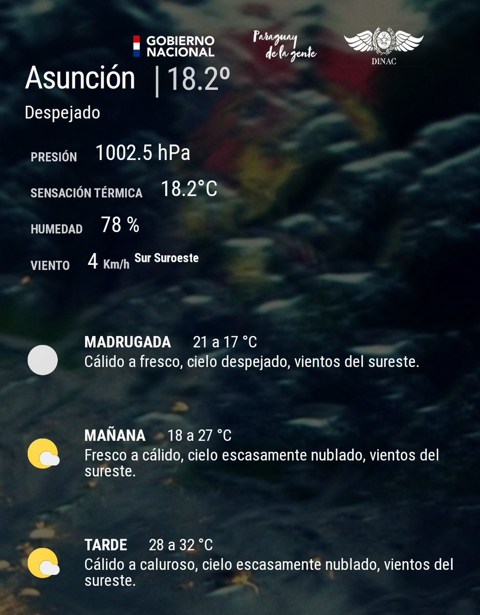 ¡Buen día, mba'eichapa! Linda madrugada, con cielo despejado y pinta una tarde calurosa. Completo informe desde las 05:30.